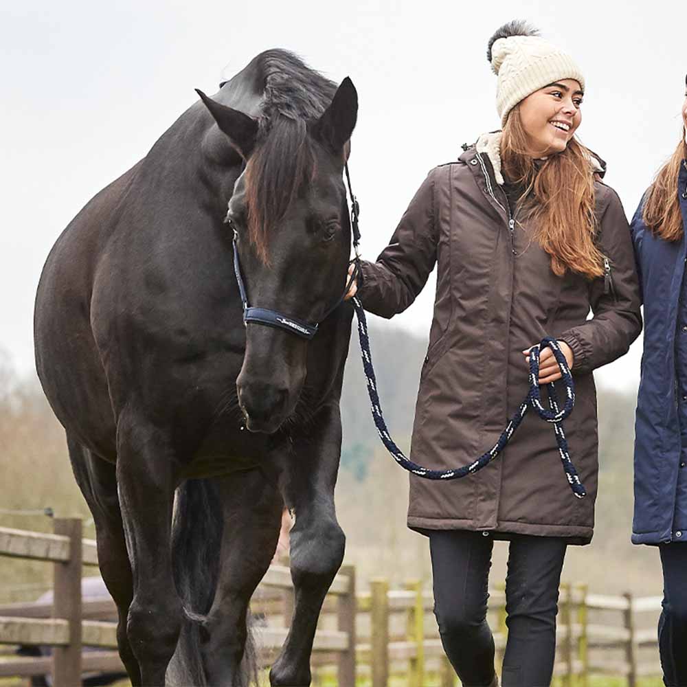 Denne varme og vannavvisende kappen, i brunt, har en halvlang modell som er optimal for deg som ikke er så lang, og er perfekt for vinteren! Den er forsynet med et elastisk bånd i midjen, en høykvalitets toveis glidelås foran samt høye ridespalter, med magnetiske knapper, som gir deg best bevegelsesfrihet i salen.