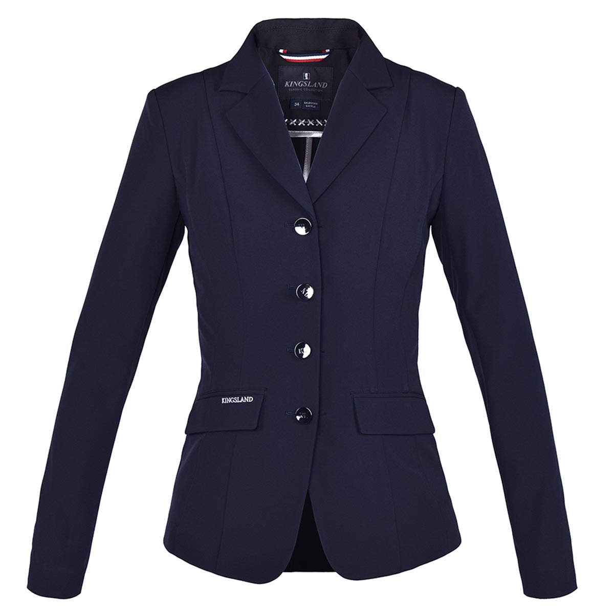 Konkurransejakke for dame som kombinerer et klassisk utseende med moderne funksjonsmateriale. Blanding av polyester, elastan og spandex gir et teknisk stoff med 4-veis stretch for uhindret bevegelse og smidighet. Det vevde softshell-materialet gir god ventilasjon gjennom fibrene og tørker raskt. Diskrete designdetaljer som Kingsland-logo på lommen, KL-merket på knappene, og en liten fargeikon i bakre nedre del. Maskinvaskbar på 30 grader.