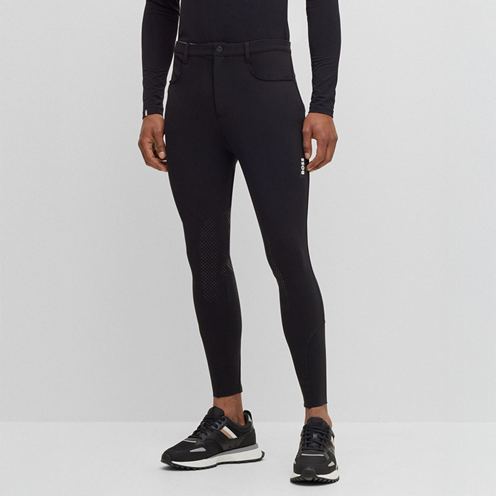 Det elastiske materialet gir en smidig og komfortabel passform med god bevegelsesfrihet, både under ridning og i hverdagen. En kontrasterende BOSS-logo på venstre ben tilfører en stilren og moderne detalj.