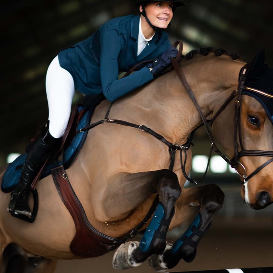 Ridebuksen er utstyrt med fire praktiske lommer – to med glidelås og to sidelommer som passer perfekt til mobiltelefon. Silikongrip ved knærne gir god stabilitet i salen, noe som er spesielt fordelaktig under hopping.