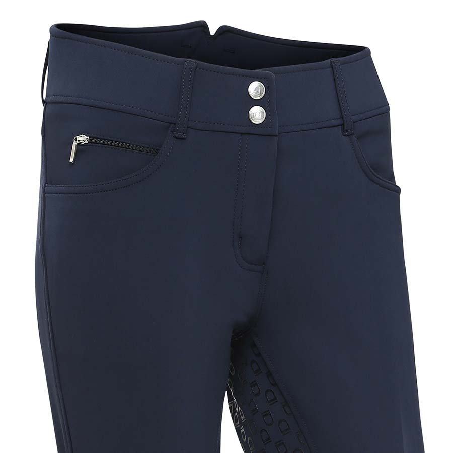 Den er utstyrt med en diskret, vertikal glidelåslomme på høyre lår – perfekt for sikker oppbevaring av mobilen under ridning. Det høyteknologiske materialet sørger for at buksen holder fasongen, samtidig som den føles myk og komfortabel mot kroppen.