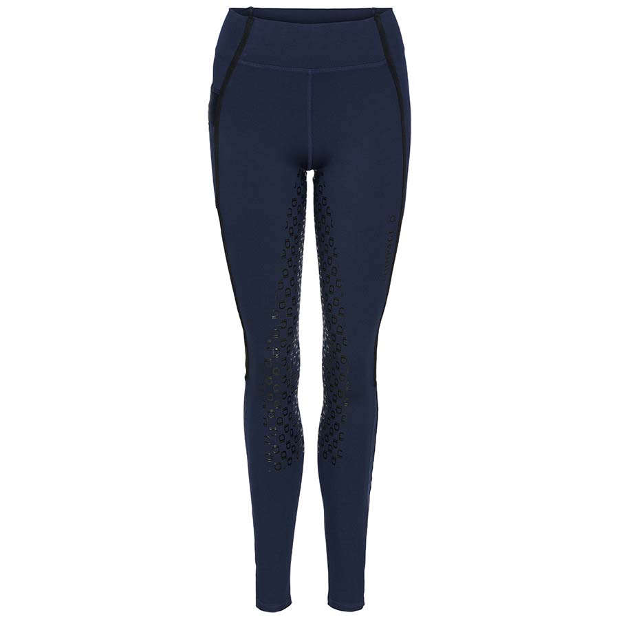 Materialet transporterer fukt effektivt og holder deg tørr under hele rideøkten. Helskinn i silikon gir godt grep og en stabil sits i salen, mens en praktisk mobillomme på låret gjør det enkelt å ha med seg telefonen.