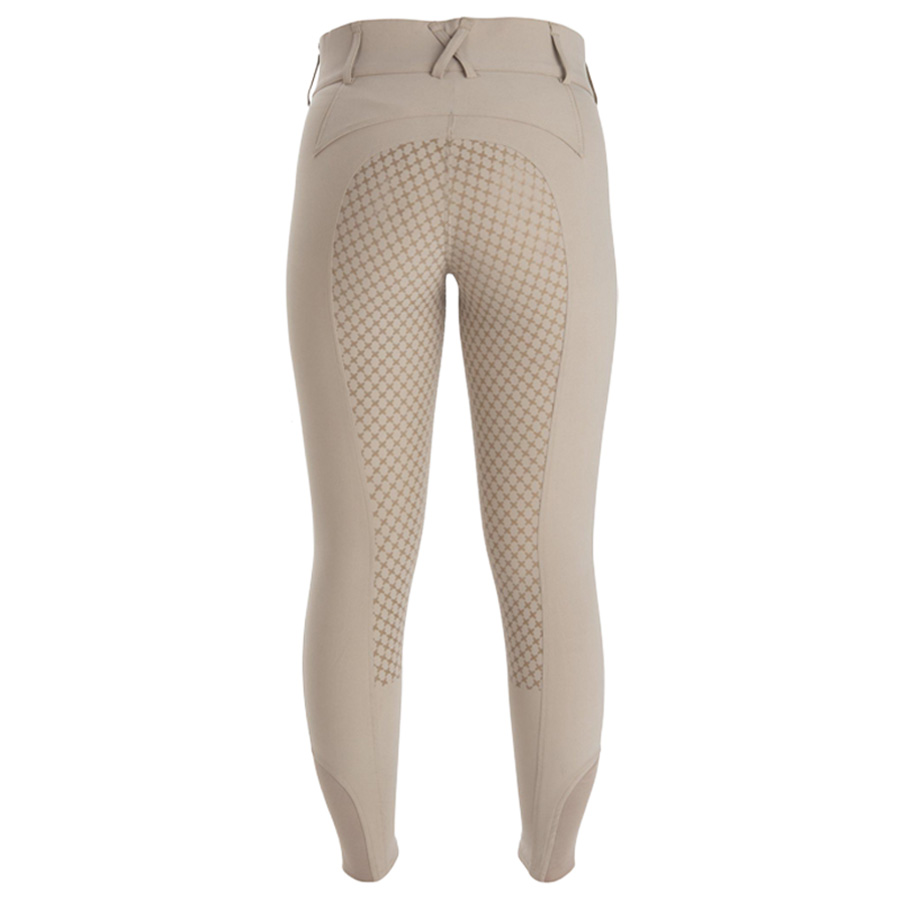 Den grå ridebuksen er utstyrt med to diskrete og romslige mobillommer, hvorav én har glidelås for ekstra sikker oppbevaring. Elastiske benavslutninger i Lycra® gir en smidig og komfortabel passform under ridestøvler.