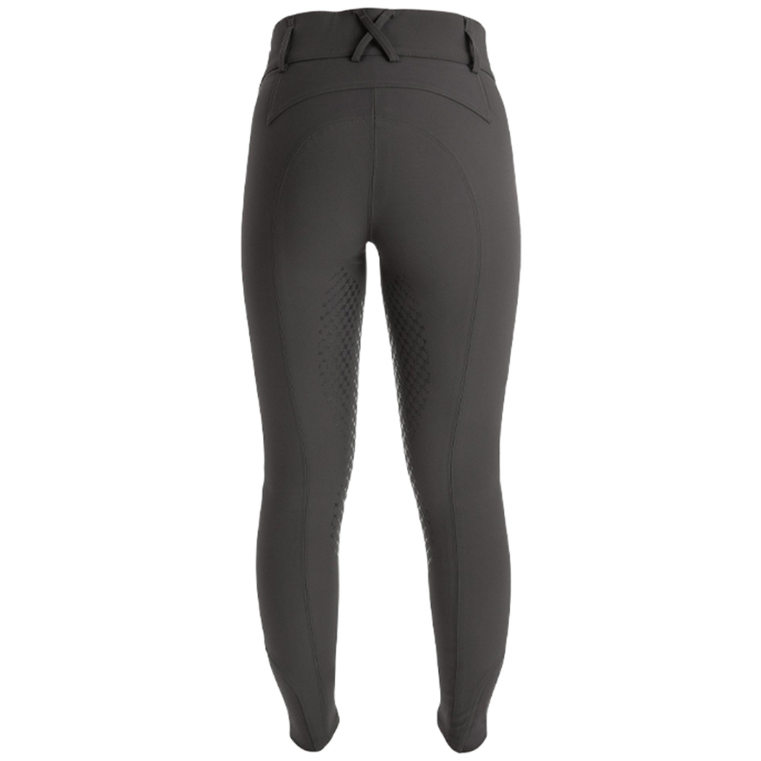 De grå ridebuksene har to diskrete, dype mobilommer, hvorav den ene er utstyrt med glidelås. Elastiske benavslutninger i Lycra® gir en smidig avslutning under ridestøvler.