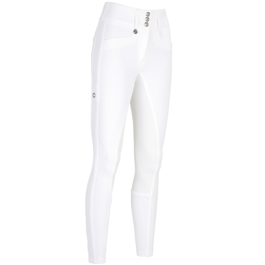 Ridebuksen har høy midje med et bredt midjebånd som gir god støtte og komfort. Helskinn i silikon sørger for godt grep og stabilitet i salen. De ekstra stretchy benavslutningene gir en smidig og komfortabel passform under ridestøvler.