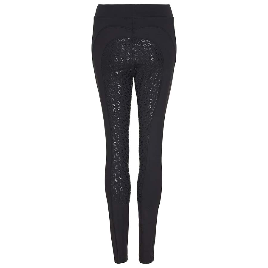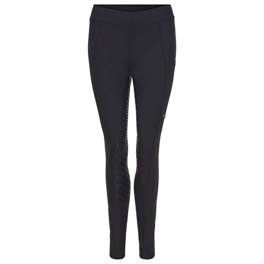 Materialet transporterer fukt effektivt og holder deg tørr under hele rideøkten. Helskinn i silikon gir godt grep og en stabil sits i salen, mens en praktisk mobillomme på låret gjør det enkelt å ha med seg telefonen.
