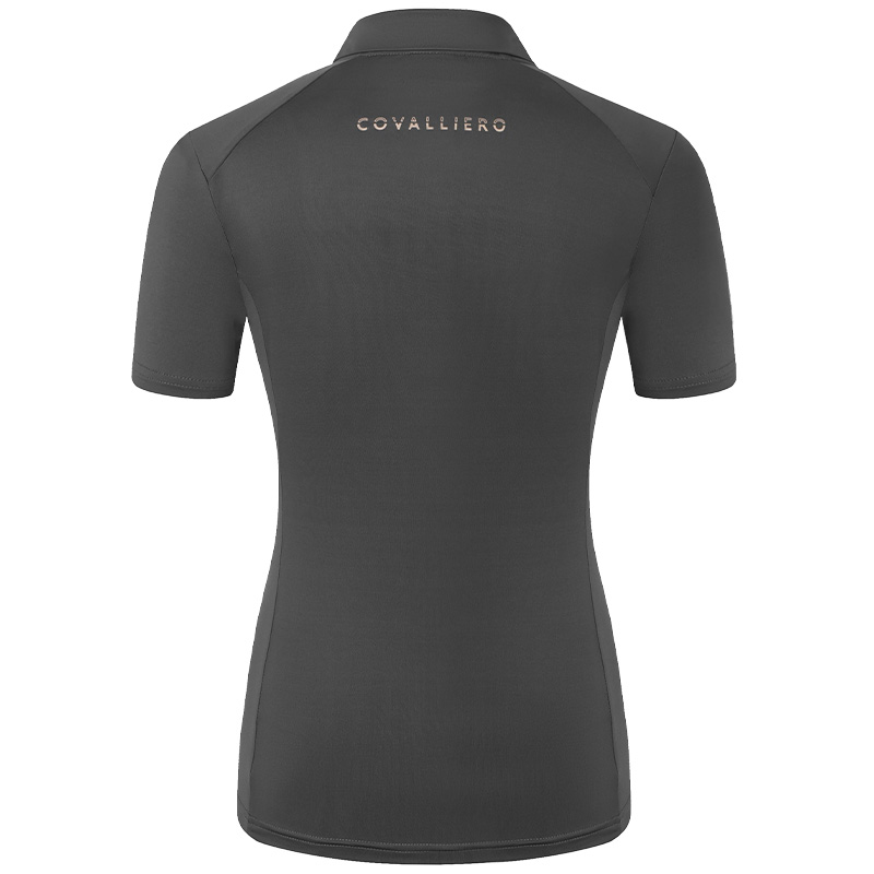 Sporty ridetopp i et lett og funksjonelt materiale, perfekt for varme dager i stallen eller under trening. Det elastiske stoffet følger kroppens bevegelser og gir en figurnær passform som føles komfortabel og smidig i salen.