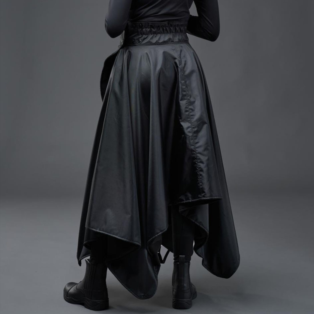 Kjolkanten kan enkelt festes opp i midjen for å unngå at den sleper i bakken når du ikke sitter i salen.
