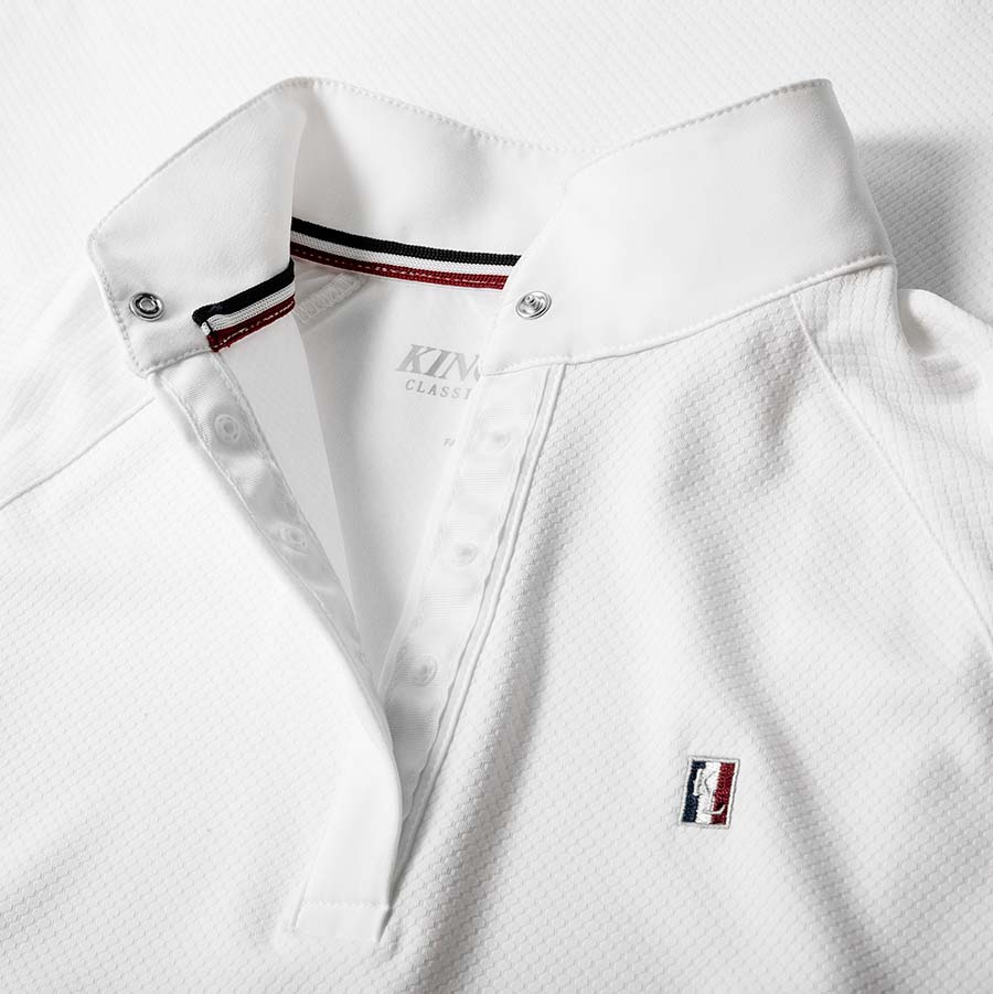 Hvit, stilren konkurransetopp for barn og junior, fra Kingsland Classic, laget i et høyteknologisk materiale med både hurtigtørkende og fukttransporterende egenskaper. I tillegg tilbyr Classic Junior Short Sleeve Show Shirt Girls høy fleksibilitet og bevegelighet, samtidig som det godt ventilerte stoffet, sammen med sidestykker i mikro piqué, sikrer optimal ventilasjon med god luftgjennomstrømning.