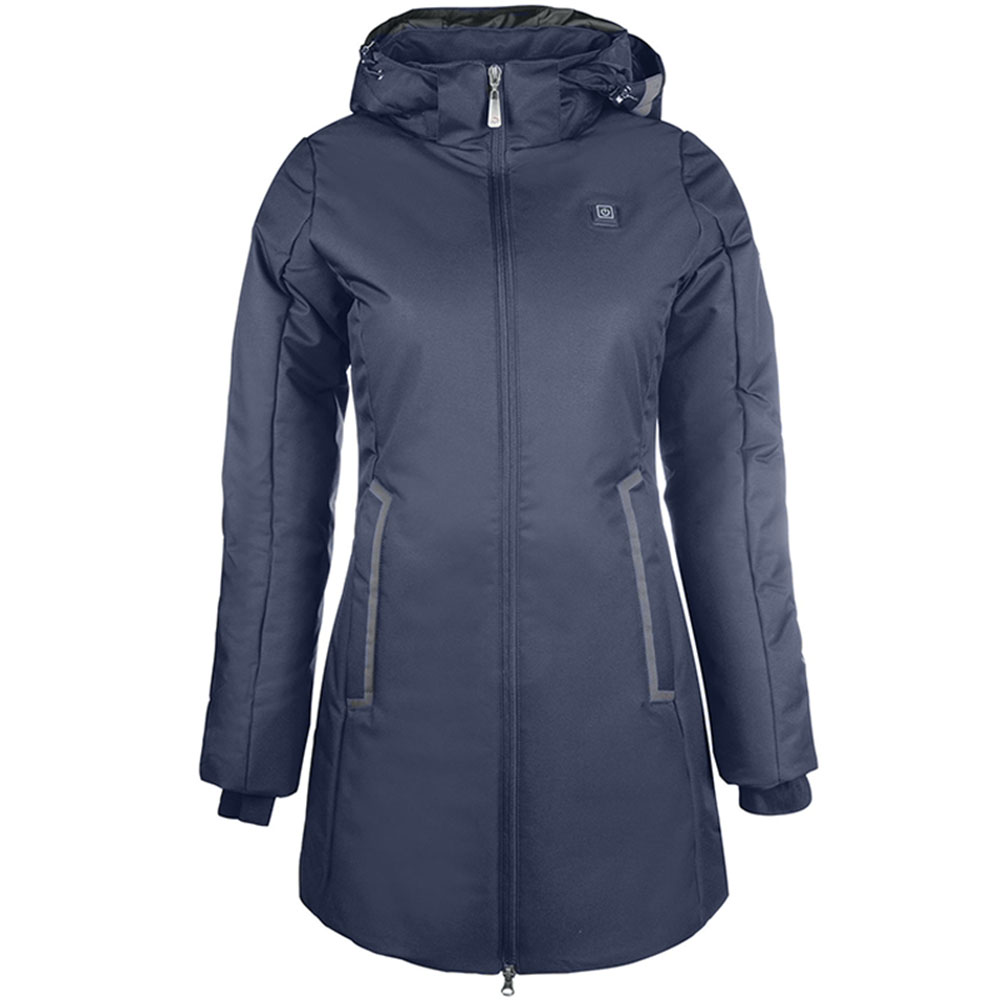 Framlagt med integrerte varmeslanger og utviklet med stort fokus på kombinasjonen av funksjonalitet og komfort, det er HKMs avanserte, marinblå ridekåpe Elegant. Kåpens vannavvisende materiale holder deg tørr i alt vær samtidig som den integrerte, justerbare varmefunksjonen gir deg mulighet til å tilpasse varmen etter behov - dette er med andre ord redningsmannen i nød for deg som er litt ekstra frossen, eller som kanskje bare har blitt lei av å sitte og fryse på ridehusets tribune.
