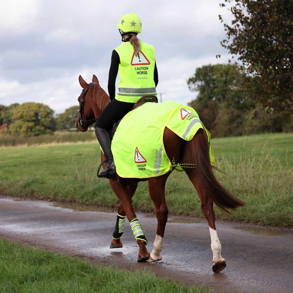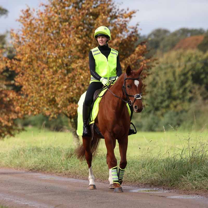 Lendedekken i en blanding av mesh og refleksmateriale samt refleksbånd. Øker markant ekipagets synlighet i mørke forhold og øker sikkerheten for både rytter, hest og trafikanter.