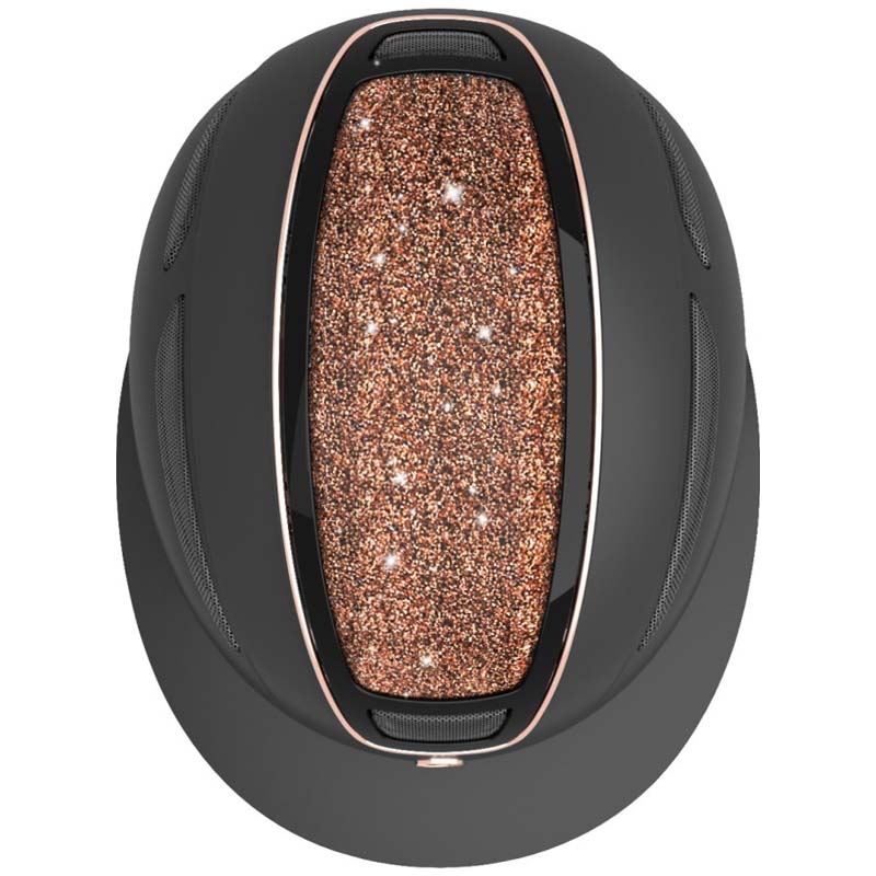 Elite Polo Rose Gold er en hjelm for ryttere som ønsker god beskyttelse med et moderne og elegant uttrykk. Den lave poloskyggen gir beskyttelse mot sol og regn uten å ta mye plass. Hjelmen har en glitrende topp og detaljer i rosegull som gir et stilrent preg uten å bli prangende. Stroppene er myke og trukket i kunstskinn for komfort og et rent uttrykk.