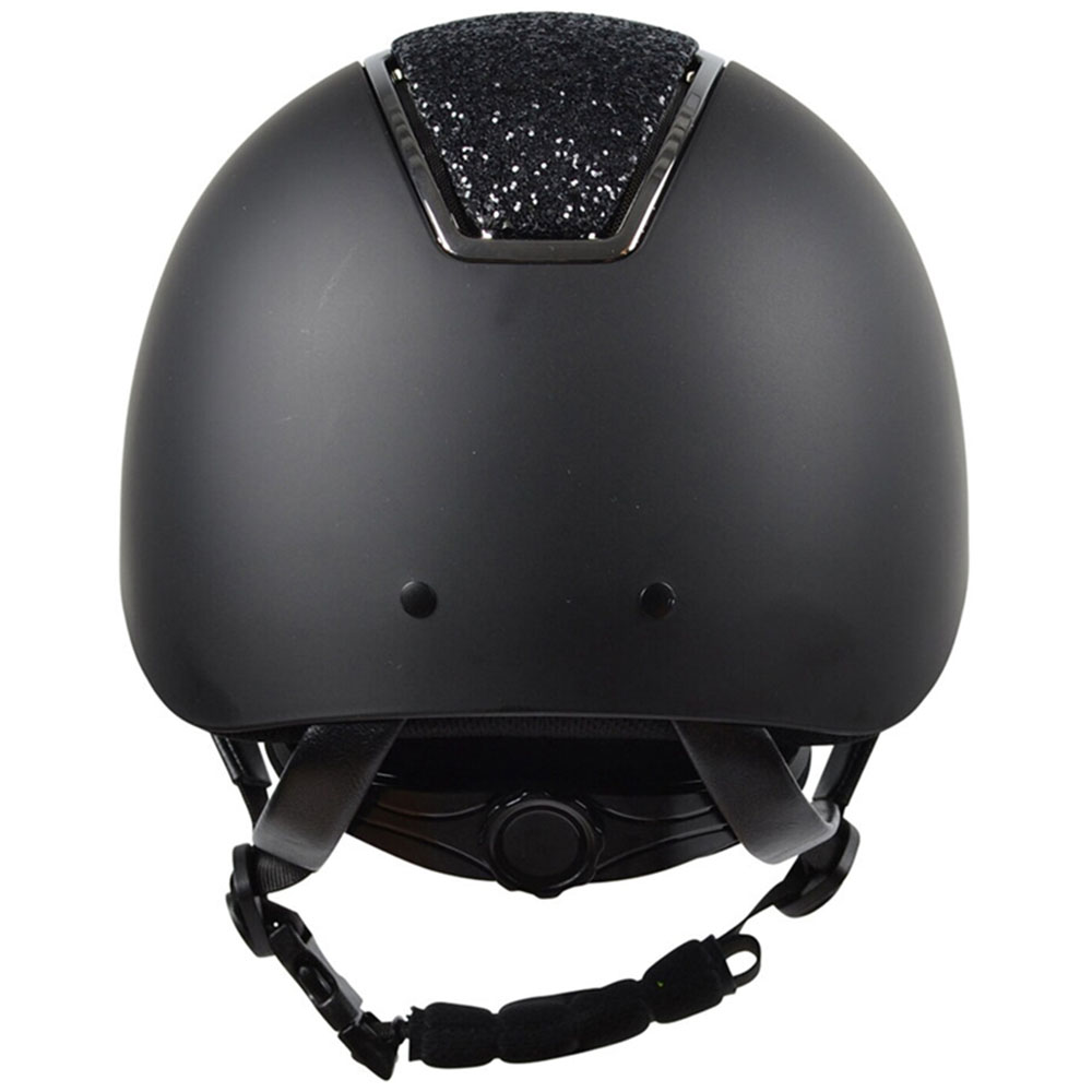 Ridehjelmen Vision Silhouette fra Hansbo Sport kombinerer moderne sikkerhet med elegant design og glitrende detaljer. Den brede solskjermen gir god beskyttelse mot solen, mens seks ventilasjonsåpninger sørger for god luftgjennomstrømning og komfort under hele rideøkten. Det glitrende panelet gir hjelmen et eksklusivt preg.