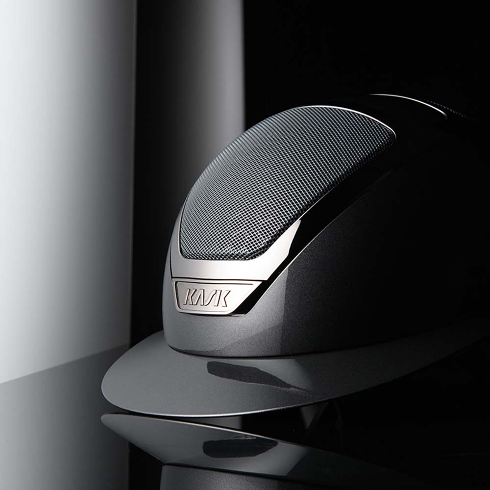 KASK Star Lady Pure Shine, her i fargen Anthracite, er en høykvalitets ridehjelm med bred poloskjerm som kombinerer sikkerhet, komfort og et elegant, moderne design. Den høyglansede overflaten fremheves av blanke kromdetaljer ton-i-ton med skallet, noe som gir et stilrent og pent uttrykk.