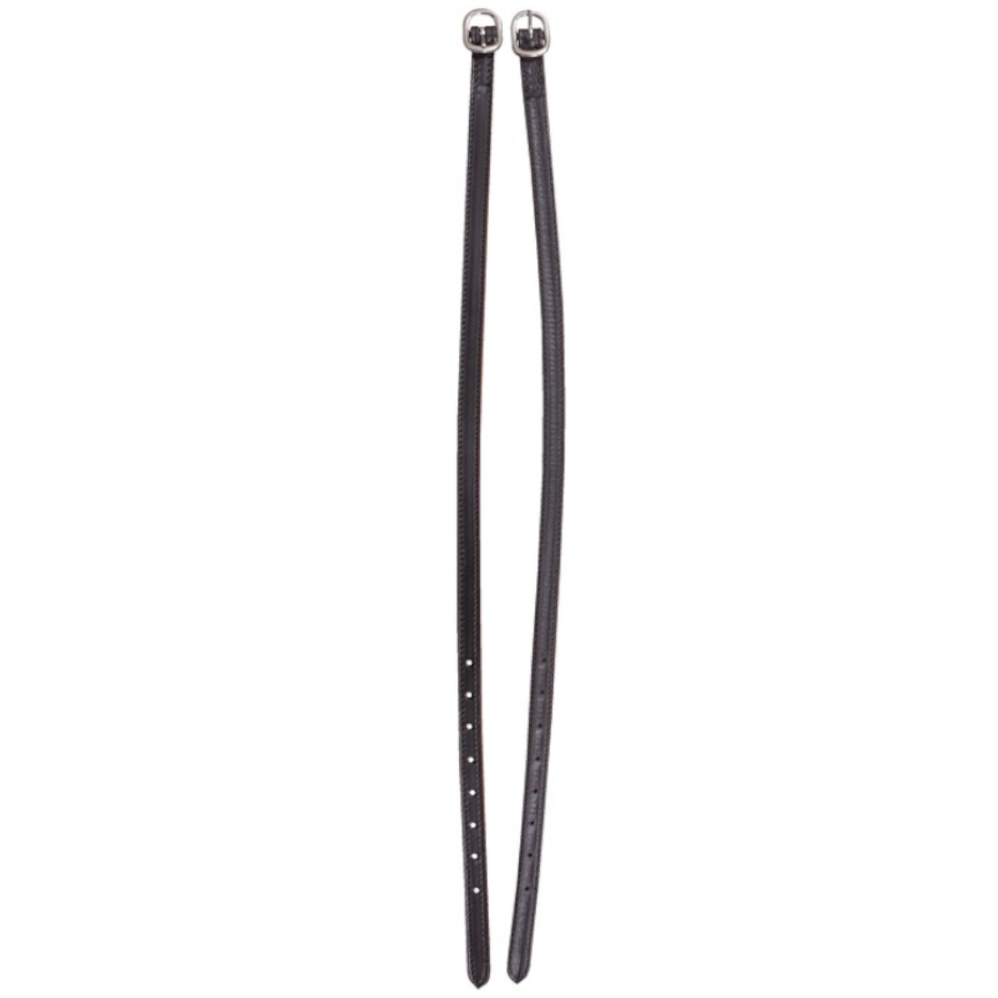 Svarte sporrremmer fra Equality Line. Laget av mykt, italiensk lær og utstyrt med blinkende silverspenner.