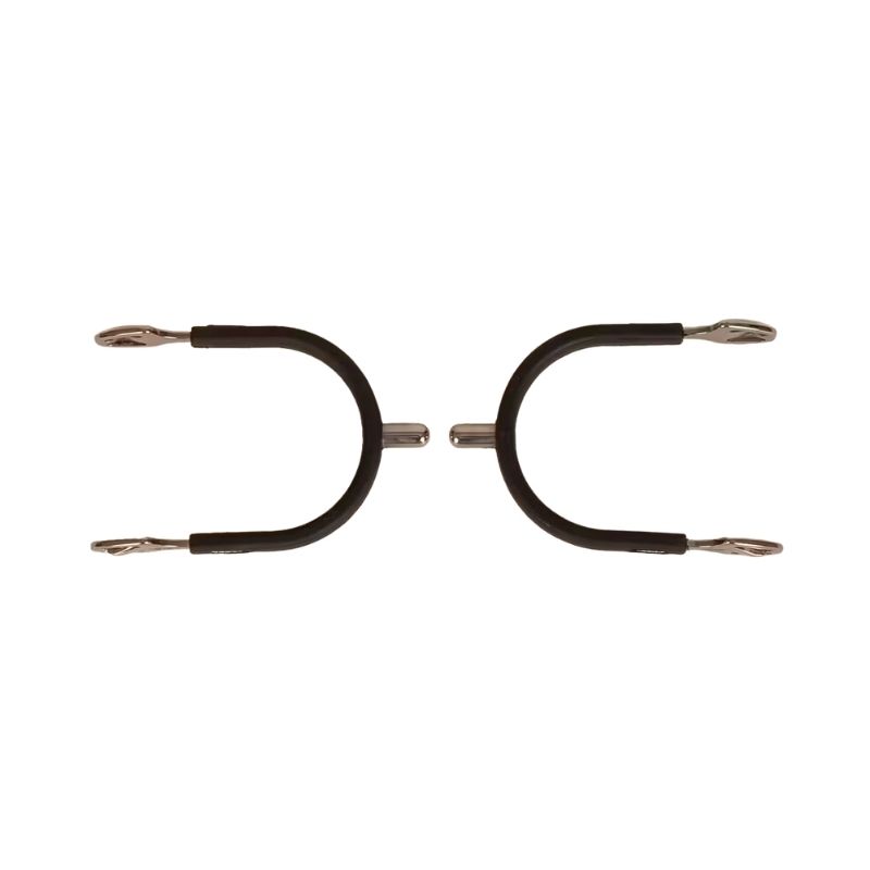 VELARI sporer i rustfritt stål er designet for å gi presis og myk kommunikasjon mellom rytter og hest. Den slitesterke konstruksjonen i rustfritt stål sikrer lang levetid, mens gummibelegg holder sporene på plass og beskytter støvlene mot slitasje. De avrundede endene gir jevnt og skånsomt trykk, som muliggjør nyanserte og effektive signaler uten ubehag.