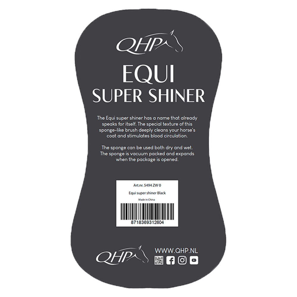 QHPs innovative og prisvennlige grooming-svamp Equi Super Shiner er et absolutt must i ryktvesken - på en effektiv måte fjerner den både leire og tørkede svetteflekker, samtidig som dens unike tekstur gir hesten din en skjønn og stimulerende massasje som igjen fremmer en god blodsirkulasjon. Svampen kan selvsagt også brukes ved rengjøring av for eksempel bøtter og vannkar, eller når du raskt og enkelt bare vil skrubbe skitt av hestens hover.