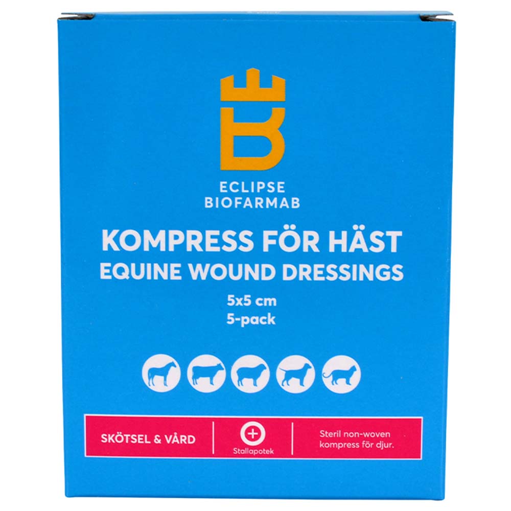 Dette sterile kompress for hest er et praktisk hjelpemiddel for sårvask og sårforbinding. Hver kompress er stykkpakket for enkel bruk og hygiene. Med en størrelse på 5x5 cm er den lett å påføre på ulike sår og skader. Kompressen selges i en 5-pakning, noe som gjør det praktisk å ha flere tilgjengelig når det trengs. Perfekt for både stall og konkurranse, der rask og effektiv sårbehandling er avgjørende.