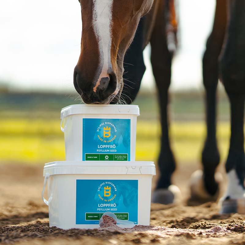 Loppefrø til hest som bidrar til å transportere ut sand og grus fra tarmen. Når hester går i paddocker eller uteområder med lite eller ingen gress, kan de få i seg sand og jord som over tid kan hope seg opp og føre til sandkolikk. Noen hester kan også plukke i seg bark, kongler og annet uønsket materiale.