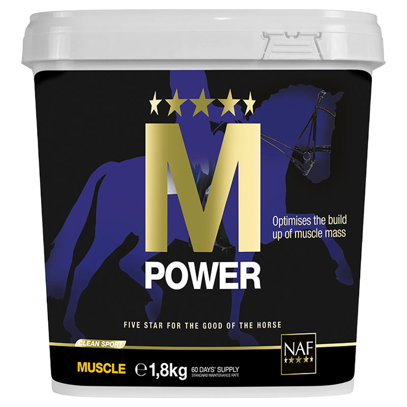 NAF M Power er et kvalitativt tilskudd for hester i trening som trenger ernæringsmessig støtte for muskelmasse, styrke og restitusjon. Produktet er utviklet for hester med fokus på prestasjon, utvikling og langsiktig holdbarhet. Med en balansert sammensetning av aminosyrer, vitaminer og sporstoffer fremmer M Power muskeloppbygging, restitusjon og normal funksjon – både i daglig trening og i forberedelser til konkurranse.