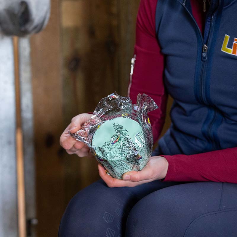 Refill-steinen festes i Likit-holder og kan enkelt henges opp i boksen eller uteområdet for å gi hesten sysselsetting over tid.