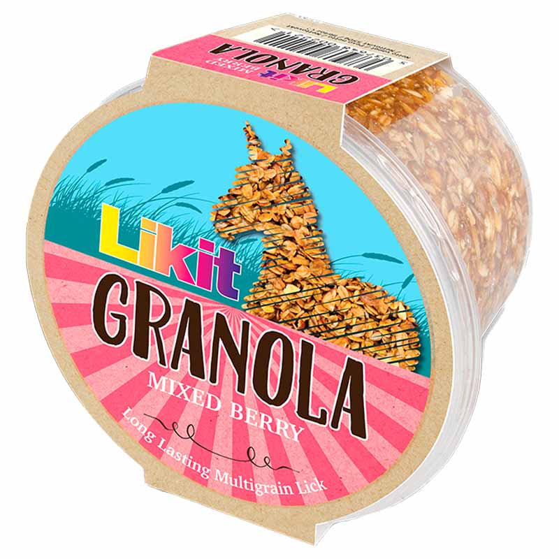 • Likits populære granolaslikkesteiner, inkludert denne med smak av skogsbær, er ideelle å gi til hester som trenger litt ekstra aktivering og stimulans - uansett om det er til hverdags, på konkurranseplassen eller kanskje under en lang, ufrivillig boksestø.
