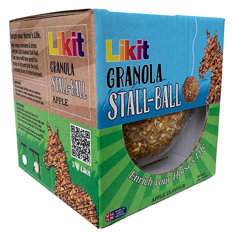 LikIts enormt populære Granola-stallboller, her i smak av eple, er ikke bare en deilig hestegodbit som varer lenge, men de gir også hesten din en morsom og underholdende sysselsetting som motvirker både tristress og rastløshet - hvor smart?