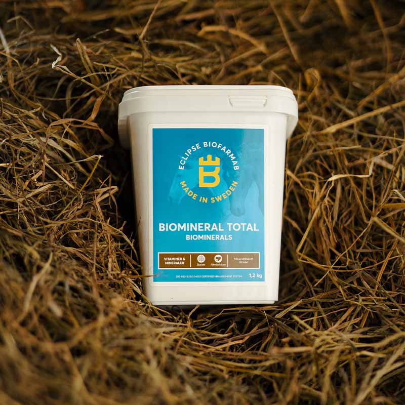 BioMineral Total er et lettopptakelig mineraltilskudd for hester, inneholdende både makro- og mikromineraler. Dette tilskuddet brukes egnet når fôrstatene ikke dekker behovet for mineraler.