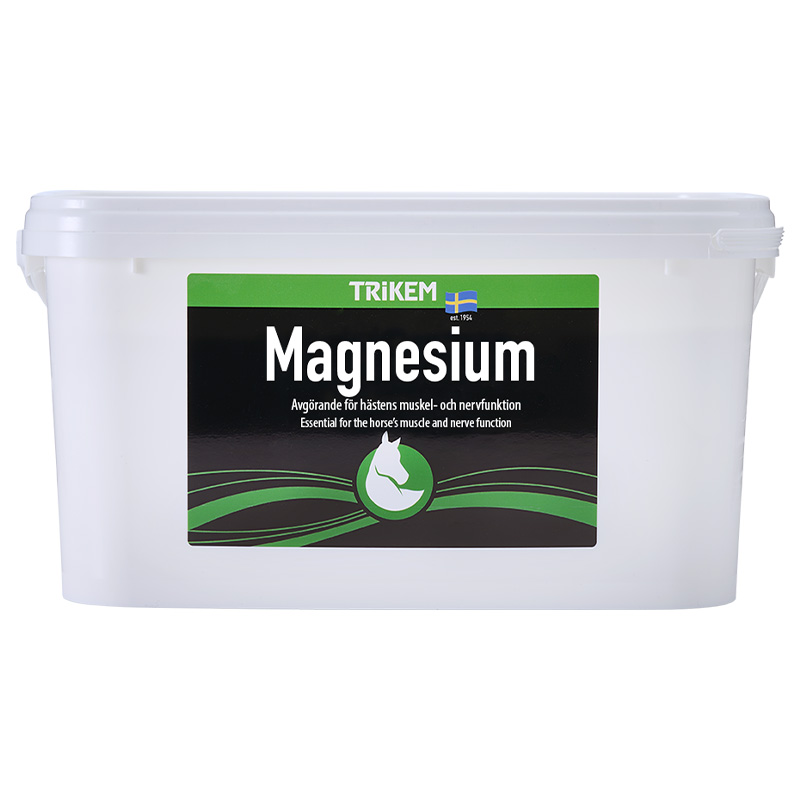 Trikems magnesium er et høykvalitets kosttilskudd for hester, som gis for å hjelpe hestens muskler og nerver til å fungere riktig. Magnesium er et mineral som hesten ikke kan produsere selv, men som må tilføres via fôr eller tilsats.